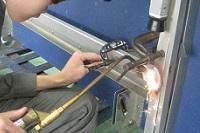 思ったよりもパイプが薄く、ガス溶接で補修することにしました。中学の先生の話では、予算の関係で壊れた備品を修理することは難しいとのことで、非常に助かったと感謝されました。