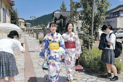2020年1月30日 16時45分土産品として楽しんでもらうための醤油を、地元の醤油店「井村商店」のご協力のお陰で開発しました。 商品のテーマは、日本らしさに新しい要素を取り入れようと「大正ロマン」に設定し、ワインと燻製の2種類の風味のものを開発し、ワイン風味には「紫花(あいか)」という姉、燻製風味には「薫子(かおるこ)」という妹キャラクターを設定して、本校OGでイラストレータの北市木の実さんに依頼してラベルも制作した。 「姉妹しょうゆ」と名付けて2月に市内で開催されるイベントで販売する。 |