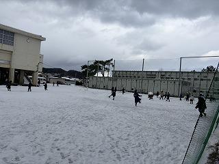 2026年1月23日 17時41分今週は、今季最強そして最長の寒波が襲来しています。ここ輪島でも、たくさんの雪がグラウンドに積もりました。お察しのとおり、子どもたちは大喜びです。休み時間になると我さきとグラウンドに飛び出してきます。休み時間が終わって、子どもたちがいなくなったグラウンドには、大きな雪玉がたくさんありました。これは、すべり台をつくろうとしたのでしょうか? 寒さをもろともせず、元気にはしゃぐ子どもたちの声が、学校中に響き渡っていました。