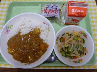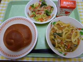 ミルクロール、カレーうどん、ツナサラダ、牛乳です。