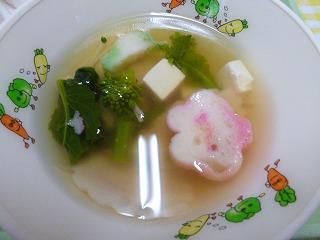 すまし汁には、春らしく菜の花と花型の麩を入れてあります。