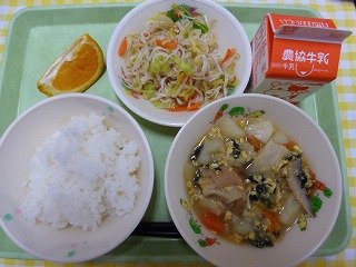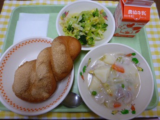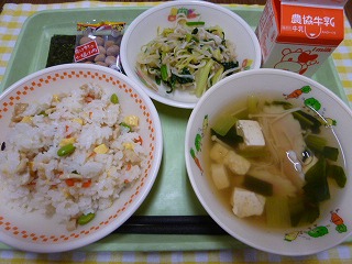 今日の献立は、6年1組の児童が家庭科の時間に考えたメニューです。
