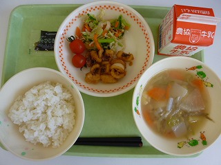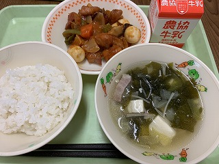 ごはん、いかのかりん揚げ、ごま和え、