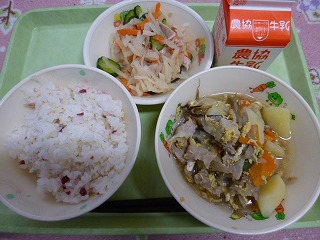 みそけんちん汁、ひじきのり、牛乳です。