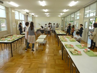 学年委員さんが準備をしてくださり、スムーズに盛り付けできました