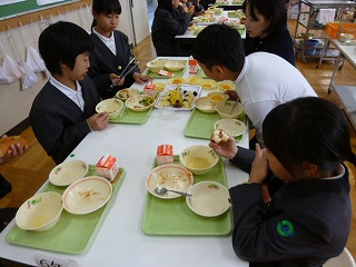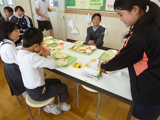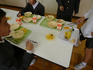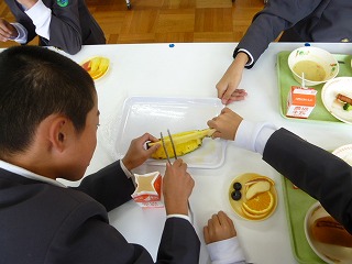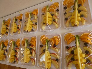 今日は、ランチルームの4年1組と6年2組のフルーツバイキングでした。