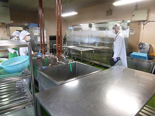 今日は、予防医学協会の方に調理場の衛生点検をしていただきました。