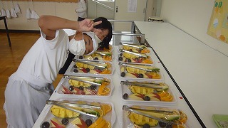 今日は、6年1組と3年2組がフルーツバイキングをしました。