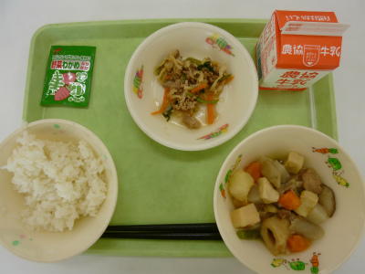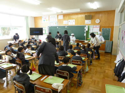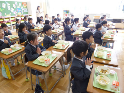 2年生は、姿勢よくしっかりお茶碗を持って食べていました。