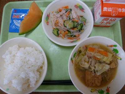 今日の給食には、山本町でメロン栽培をされている「煌会」の方々から