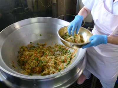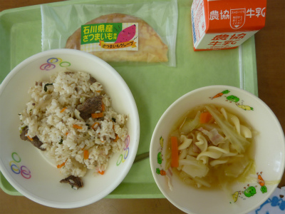 2017年9月25日 13時27分今日は、そうめんカボチャを使った給食です。