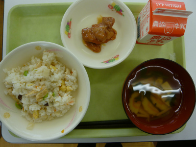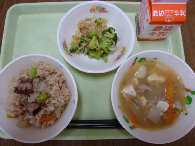 今日は、タコ飯。輪島でとれたタコを使いました。