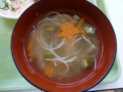 実は、そうめん汁の中に各クラス2個ずつにんじんの星も入っていました!