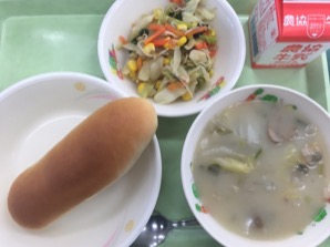 ミルクロール かぼちゃシチュー こまつなサラダ
