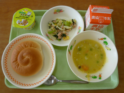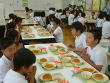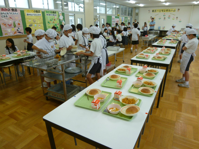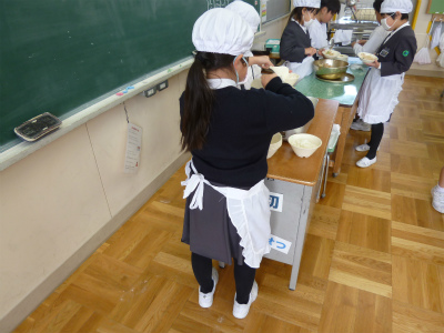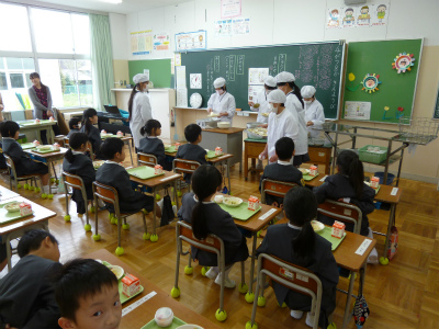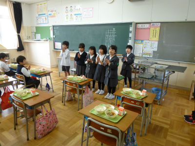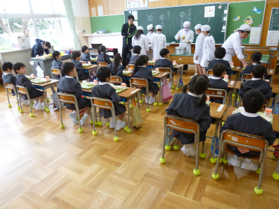 いつもは、29人で食べている給食も、今日は倍の58人での給食。