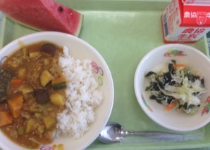 今日はなすやカボチャやアスパラガスがたくさん入った夏野菜カレーでした!