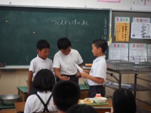 2015年7月16日 13時55分給食時間に先週一週間取り組んだ残食調べで優秀な結果だった