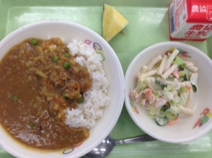 子どもたちは長休みの時間から「今日はカレーや〜!」、「パイナップルや〜!」