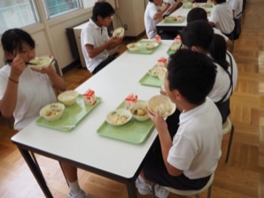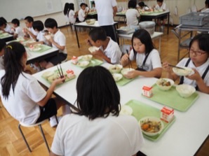 給食後のお腹をさすっている6年生の姿が印象的でした(^^)