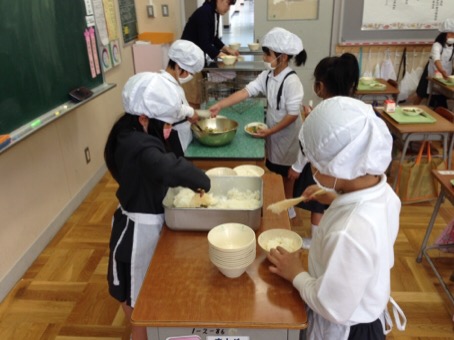 配りの当番も大事な給食を落とさないように慎重に運んでくれました。