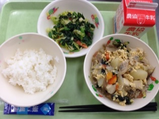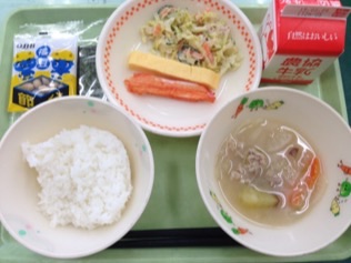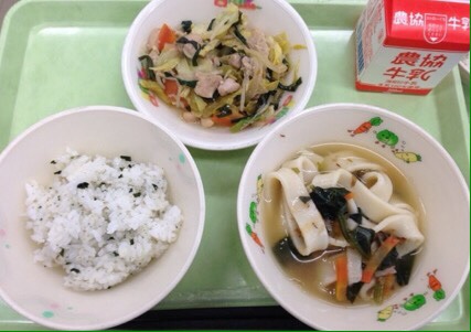 今日の給食ではあっさりとしたかつおだしの味付けにしました。