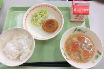 カレーの日には「給食のカレー、家のカレーより甘いよ。」「私の家はもっと辛いよ。」とよく議論になります。カレーは各家庭によって味がちがいますね!