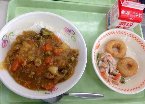 カレーライス イカリングフライ 大根サラダ 牛乳