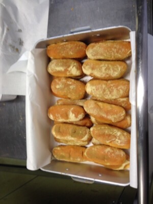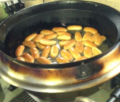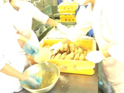 実は、パン屋さんが配達してくれたパンを調理場で揚げて、粉をつけて作っているのです!