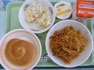 ミルクロール スパゲティー ポテトサラダ バニラプリン 牛乳
