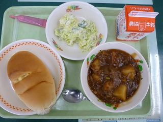 チーズパン ビーフシチュー おさつサラダ 牛乳(ミルメーク付き)