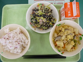 梅ご飯 卵とじ ひじきサラダ 牛乳