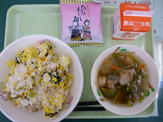ちらし寿司 菜の花のすまし汁 牛乳 ひなあられ