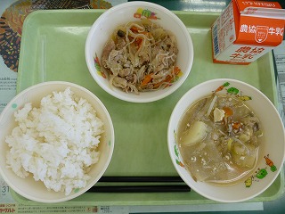 ごはん 味噌けんちん汁 豚のしょうが煮 牛乳