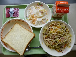 和風スパゲティー ミルク食パン(チョコクリーム付き) ヨーグルト和え 牛乳