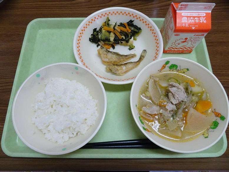 スーパーなどでは、水煮の山菜ミックスが年中売られていますが、地物の春の味を給食で味わえるのは、とても贅沢な気分です。