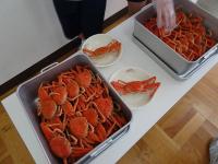 給食時間には、地元出身の校務員さんと図書司書さんに、カニの上手なさばき方を教わりながら、大変楽しく、おいしくいただいていました。
