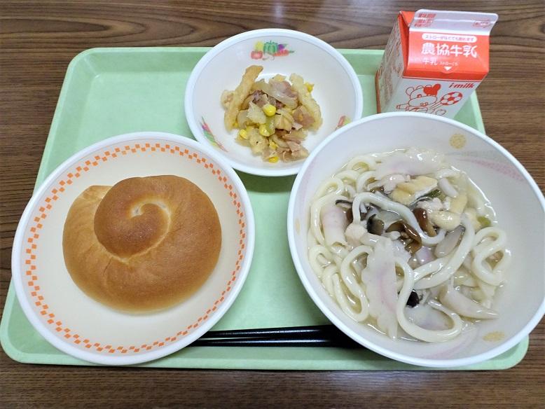 秋と言えばきのこ!ということで、今日の給食はきのこあんかけうどんでした。