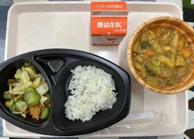 ポークカレー,塩こんぶ和え,牛乳