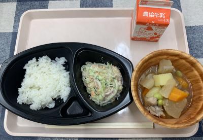 ごはん,鶏肉と大根のさっぱり煮,シルバーサラダ,牛乳