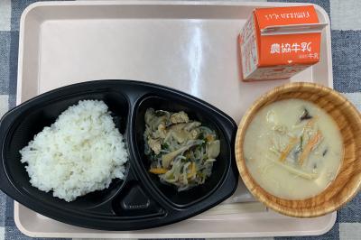 2024年6月4日 14時10分ごはん,しらたきのチャプチェ,豆乳ごま坦々スープ,牛乳