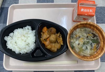チキンカレー,フルーツヨーグルト,牛乳