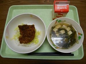 ごはんの上に、キャベツ、ソースかつ、とのせて盛り付けをします。
