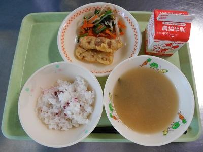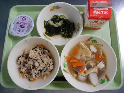 1年生の子も、ひじきごはんをしっかりと食べていました。