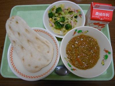 今日は、ナンとキーマカレー給食です。