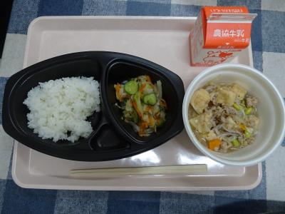 ごはん,マーボー豆腐,もやしのナムル,牛乳
