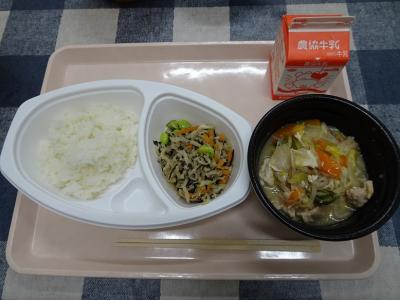 ごはん,とりやさい,ひじきと切干のツナ和え,牛乳