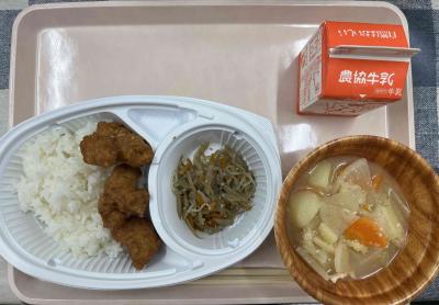 ごはん,からあげ,ごぼうのキンピラ,みそ汁,牛乳