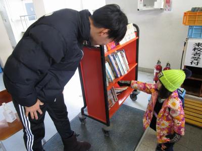 「おお!久しぶり!」「元気にしていた?」「本借りていく?」「折り紙持っていけば?」「風邪ひいてない?」「顔見れて良かった!」などたくさんの先生方が、鳳至の子に声をかけていました。