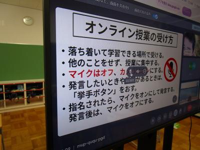 オンライン授業をするときの約束を確認してから、国語科や算数科の学習に取り組みました。オンラインになっても、鳳至の子は元気に発言していましたよ♪