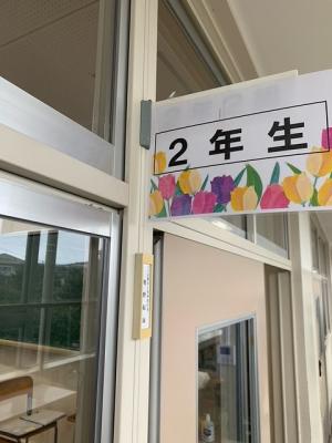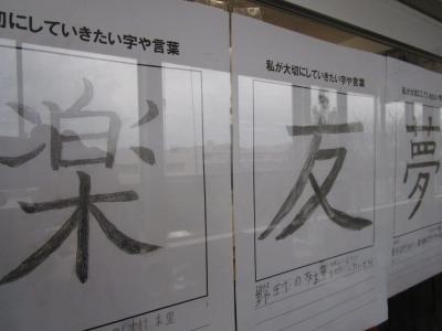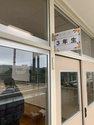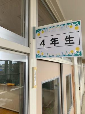 4年生の教室の窓には「書写」で仕上げた、今後大切にしていきたい言葉が丁寧に書かれています。水が使えないので毛筆でなく、硬筆で毛筆で書いたように、字の特徴を捉えて書かれています。